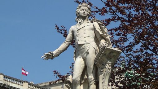 The Statue of Wolfgang Amadeus Mozart at Burggarten. Burggarten is the former court park of the imperial family, located in the back of the Hofburg complex.