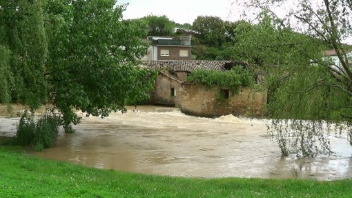 On their way into Estella, Pilgrims cross and then walk along this river, the Rio Ega. This is the flood of summer 2013. No pilgrims in this frame.