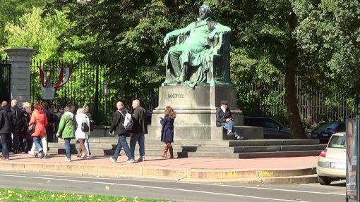 On Ring Street, the Johann Wolfgang von Goethe statue. A german poet and scientist. The Old Town of Vienna is UNESCO World Cultural Heritage Site.