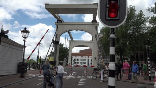 The Süskindbrug closes. The old town of Amsterdam (within Singelgracht) is UNESCO World Cultural Heritage Site.