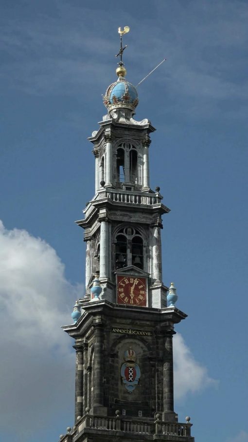 The tower of the Westerkerk. The speed of the video is accelerated. The old town of Amsterdam (within Singelgracht) is UNESCO World Cultural Heritage Site.