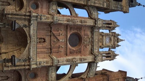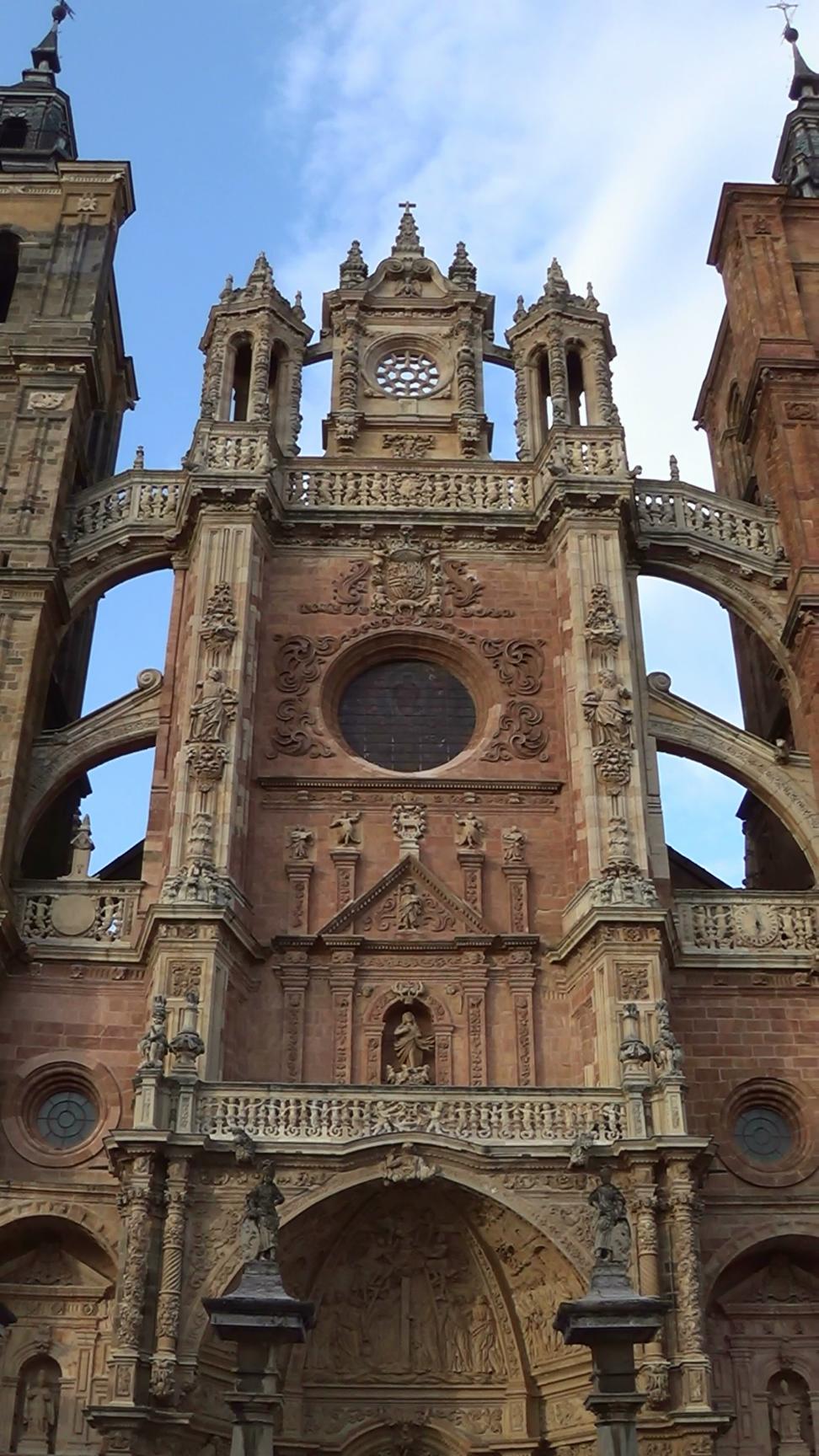 The towers of the St. Mary Cathedral (La Catedral de Santa Maria de Astorga). This is a panorama from the left to the right. Astorga is a city on the Camino de Santiago (St. James Pilgrims Trail), which is UNESCO World Cultural Heritage Site.