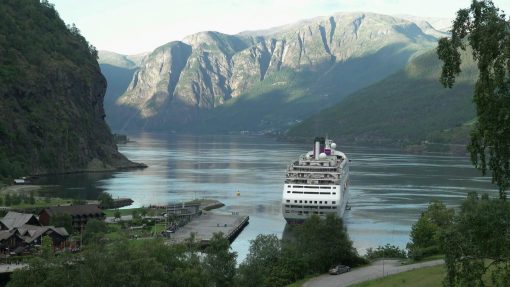 An ocean cruiser arrives at the port of Flåm. The video speed is accelerated, the trailer video is even more accelerated. This part of Aurlandsfjord is UNESCO World Natural Heritage Site.