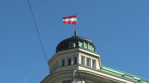 The austrian flag on the penthouse of the Hotel Bristol in the old town of Vienna. For those who look closely: There is a mini-mini wind vibration in this video.