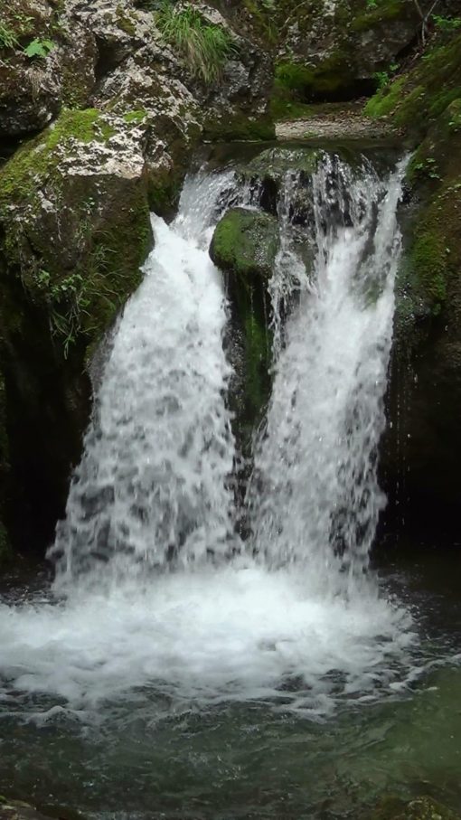 Austria, Europe. A mountain brook in the Austrian Alps. Waterfall. Upright Size.