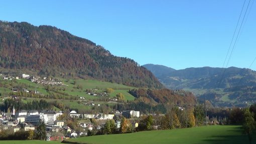 Schwarzach im Pongau, a town in the Austrian mountains, south of the city of Salzburg. This is a panorama from the left to the right.