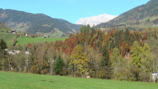 Schwarzach im Pongau, a town in the Austrian Alps, south of the city of Salzburg. This is a panorama from the left to the right.