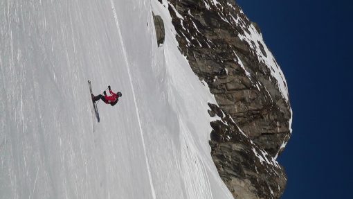 Skiing in the mountains of Salzburger Land. This is a panorama from the right to the left. Upright Size.