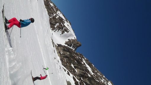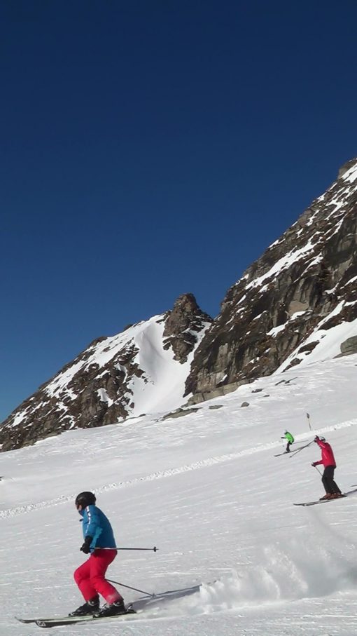 Skiing in the mountains of Salzburger Land. This is a panorama from the right to the left. Upright Size.