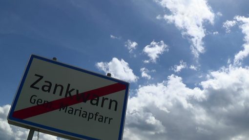 In the village Zankwarn, south of the city of Salzburg. Clouds over a road sign. The cloud speed is accelerated.