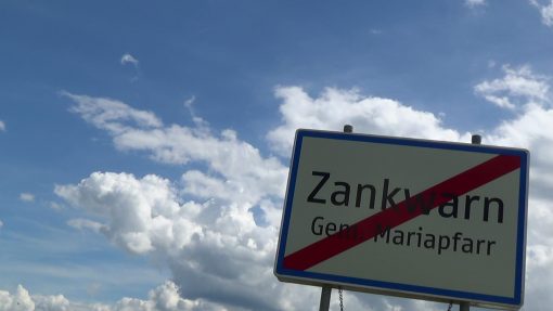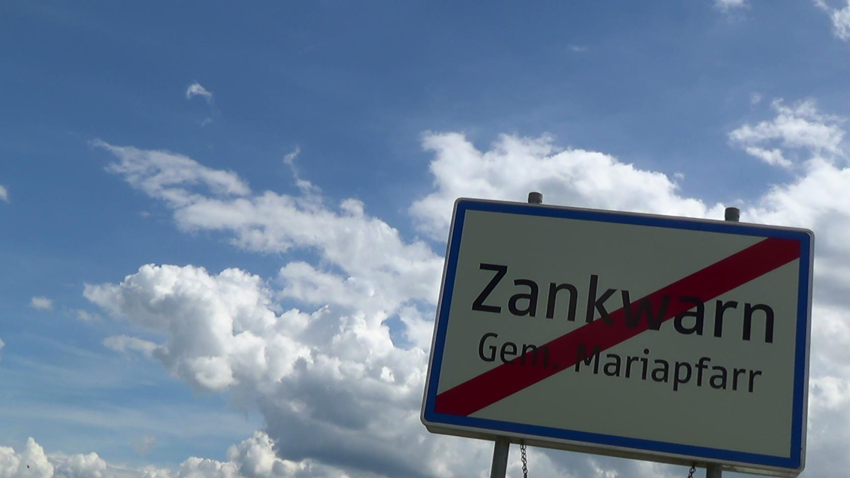 In the village Zankwarn, south of the city of Salzburg. Clouds behind a road sign. The cloud speed is accelerated.