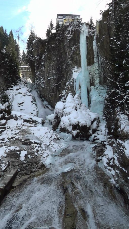 The waterfall of “Gasteiner Ache” in the center of town, seen from the bridge. Upright Size.