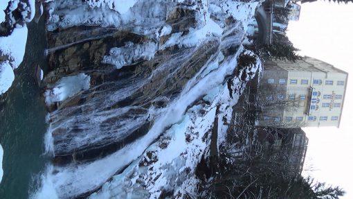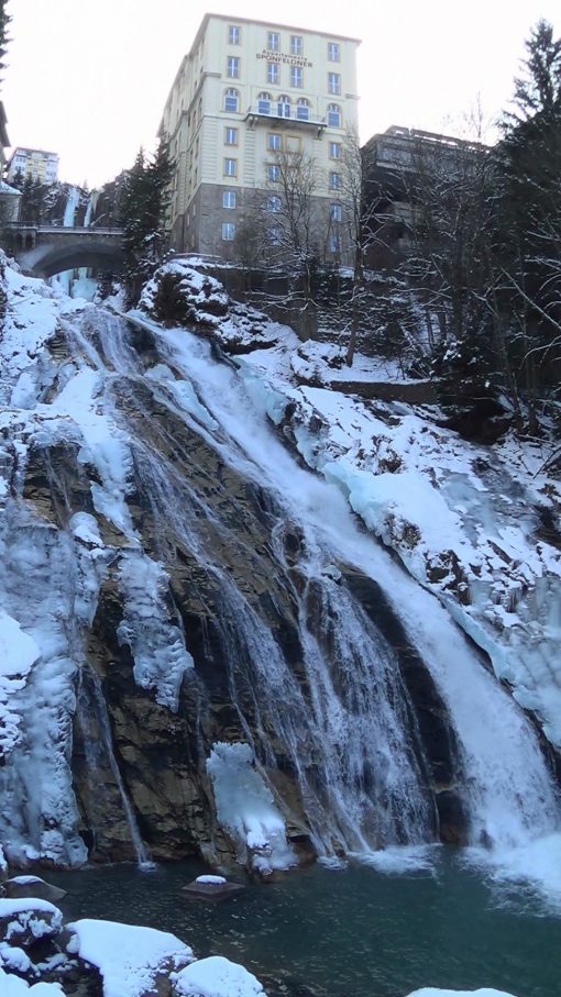 The waterfall of “Gasteiner Ache” in the center of town, seen from the foot, next to the old power house. Upright Size.