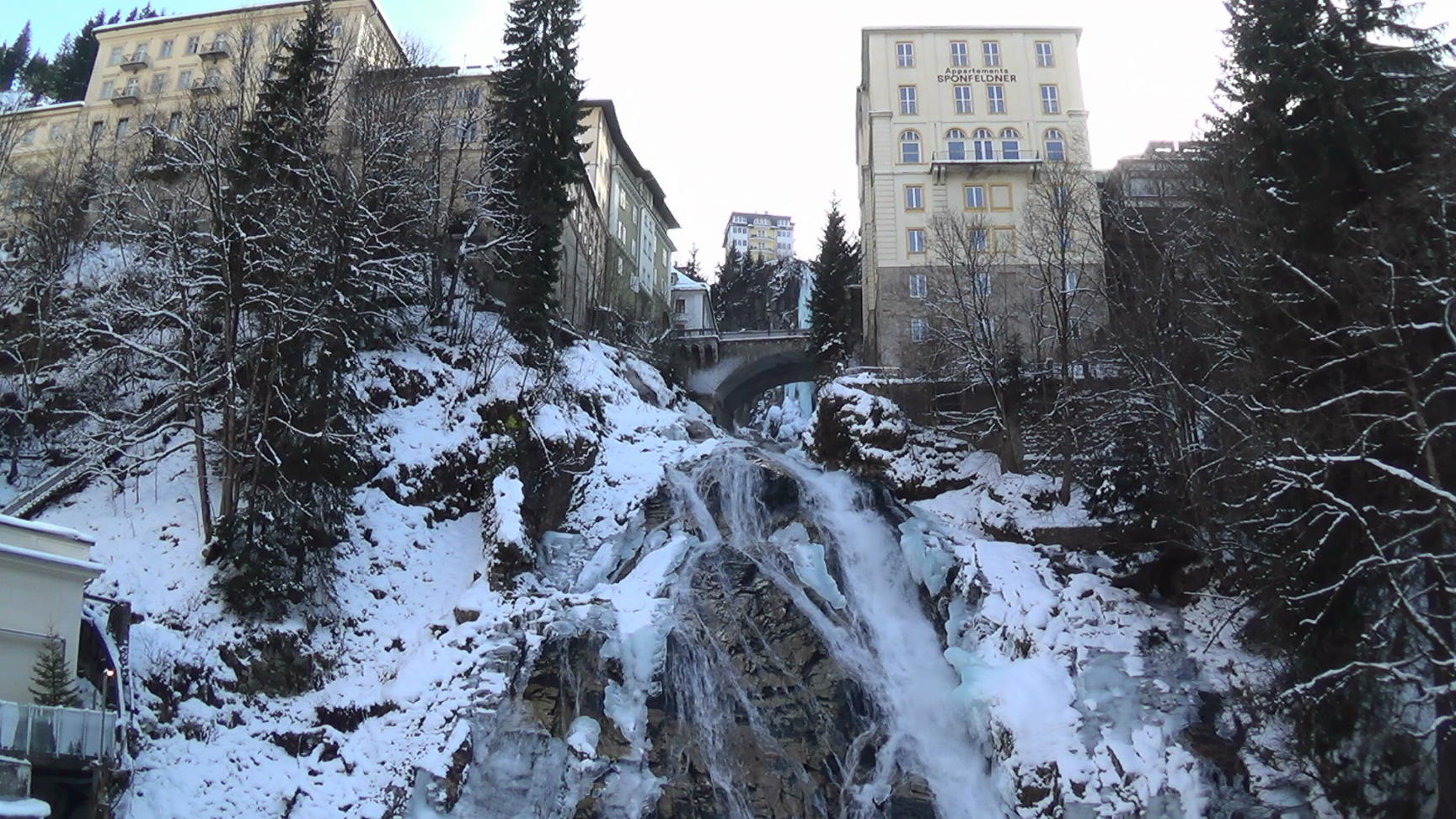 The waterfall of “Gasteiner Ache” in the center of town, seen from the lower end, at the old power house.