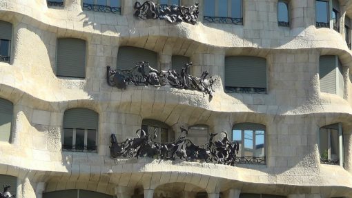 The house of the Mila Family on Passeig de Gracia, a work of the spanish artist Antonio Gaudi y Cornet. UNESCO World Cultural Heritage. This is a panorama from the left to the right.
