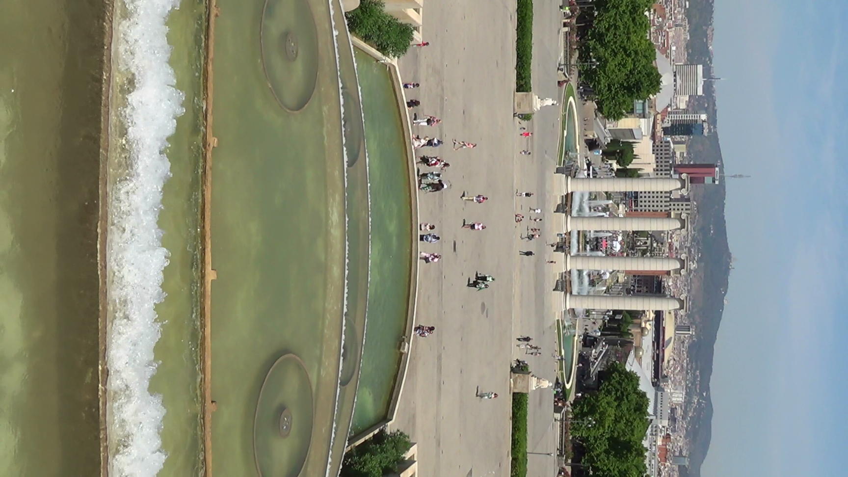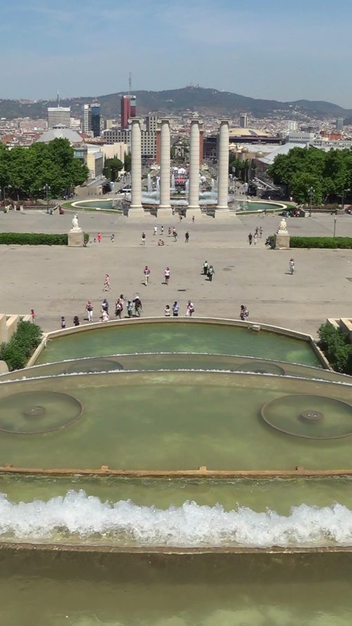A view from Palau Nacional down to the city, to Placa de Espana and Avenida Reina Maria Cristina.