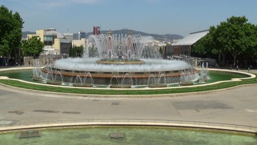 A view over Font Magica. Mind the change of the water figure in the middle of the video clip. This is a panorama from the left to the right.