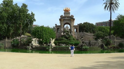 Parc de la Ciutadela, the Font Monumental. Due to the morning time, the water is not yet turned on. This is a panorama from the left to the right.