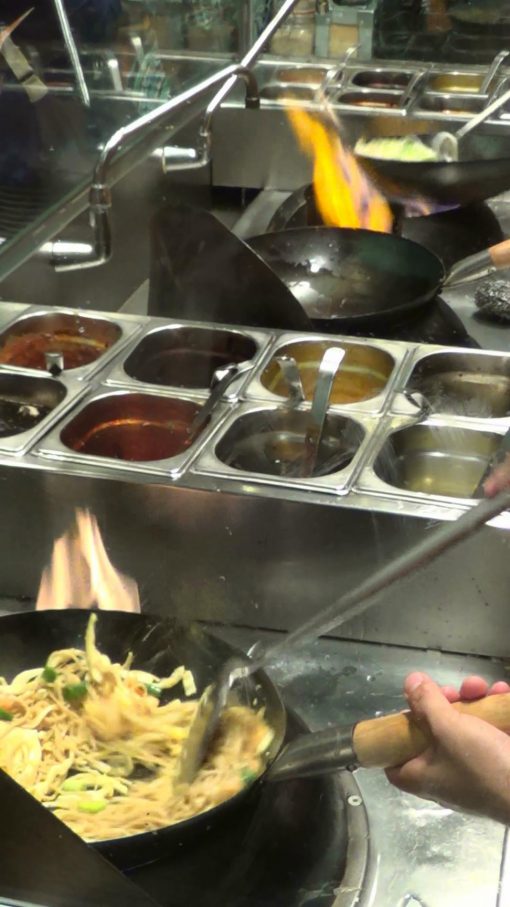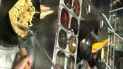 On an urban pedestrian zone. A fast food kitchen at the street. Upright Size.