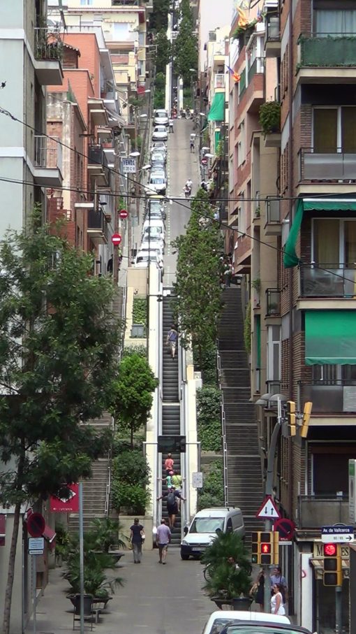 This is the escalator that, when coming from the metro station Vallcarca, leads up the steep lane Baixada de la Gloria to Parc Güell.