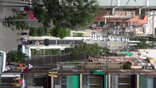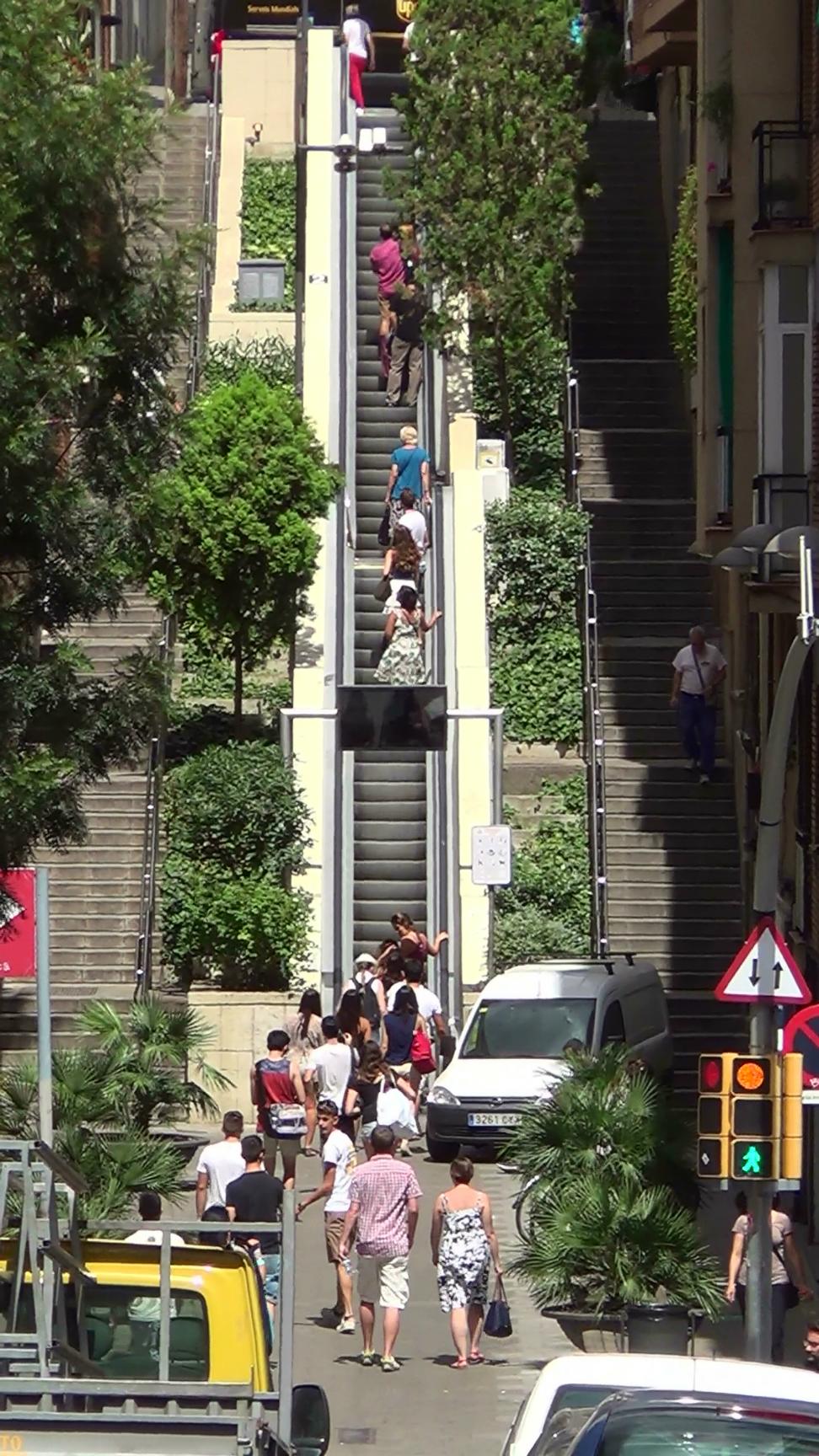 This is the escalator that, when coming from the metro station Vallcarca, leads up the steep lane Baixada de la Gloria to Parc Güell. This take is closer to the object than the video clip no. 42615.