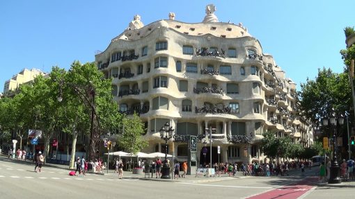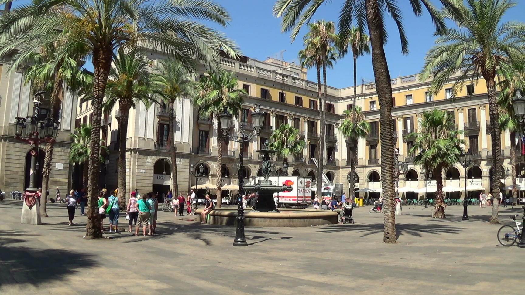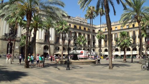 On Placa Reial in Barri Gotic. This is a panorama from the left to the right.