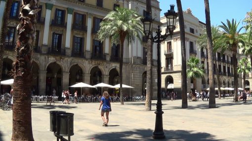 On Placa Reial in Barri Gotic. This is a panorama from the left to the right.