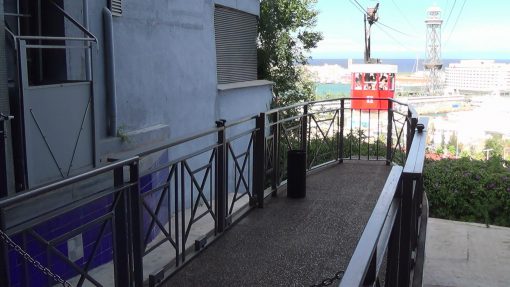 Transbordador Aeri is a ropeway service that connects Montjuic (mountain) and Barceloneta (beach). This gondola leaves the station Miramar on Montjuic.