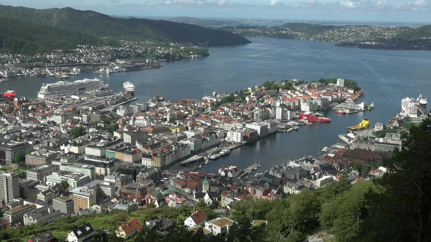 View from Mount Fløien. The video is accelerated. The old town of Bergen is UNESCO World Cultural Heritage Site.