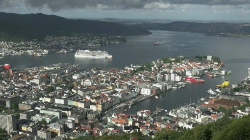 View from the Mount Fløien. The trailer speed is even more accelerated than the 50 seconds product. The old town of Bergen is UNESCO World Cultural Heritage Site.