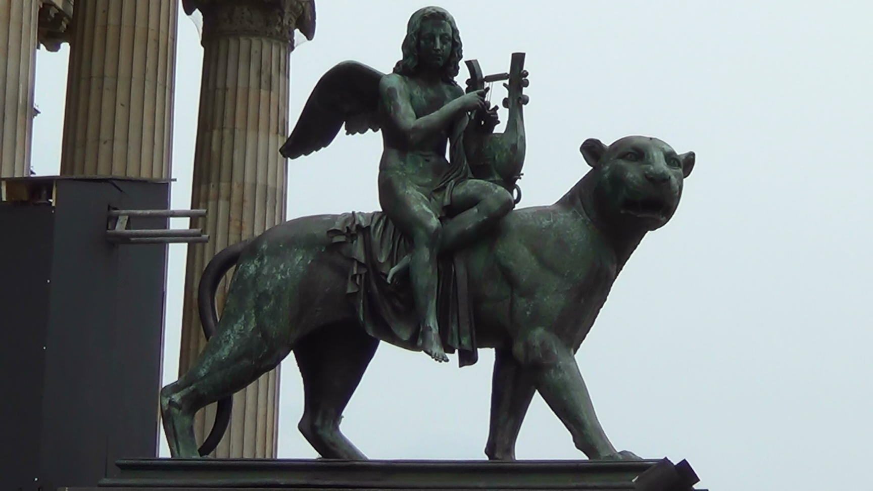Gendarmenmarkt, a sculpure at the stairway to Konzerthaus.