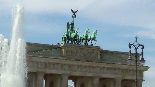 A view from Pariser Platz up to the Quadriga on top of Brandenburger Tor.