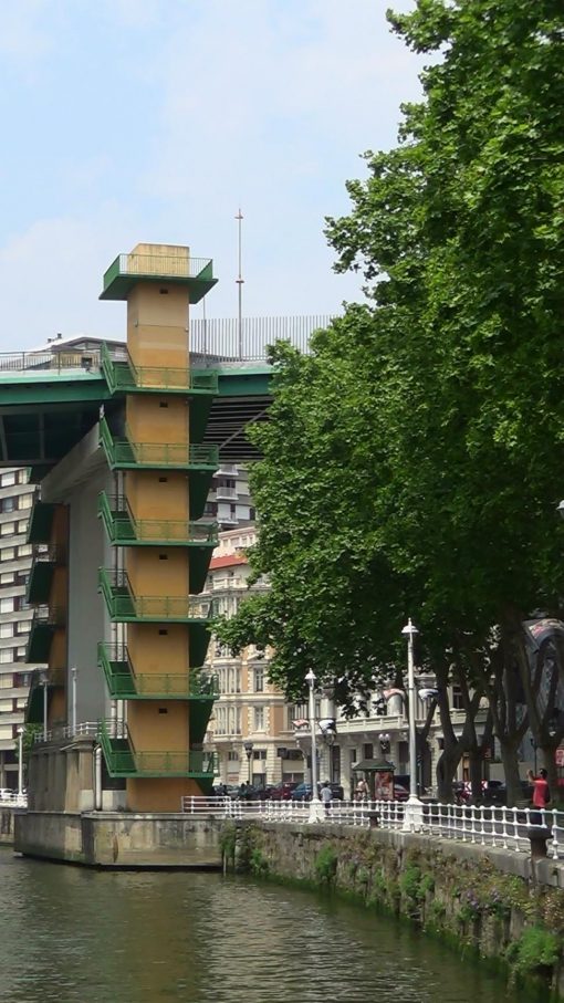 Puente de La Salve (Puente Principes de Espana) with the Guggenheim Museum behind, seen from across the Nervion River. This is a panorama from the left to the right.