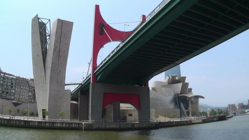 Puente de La Salve (Puente Principes de Espana) with the Guggenheim Museum behind, seen from across the Nervion River.