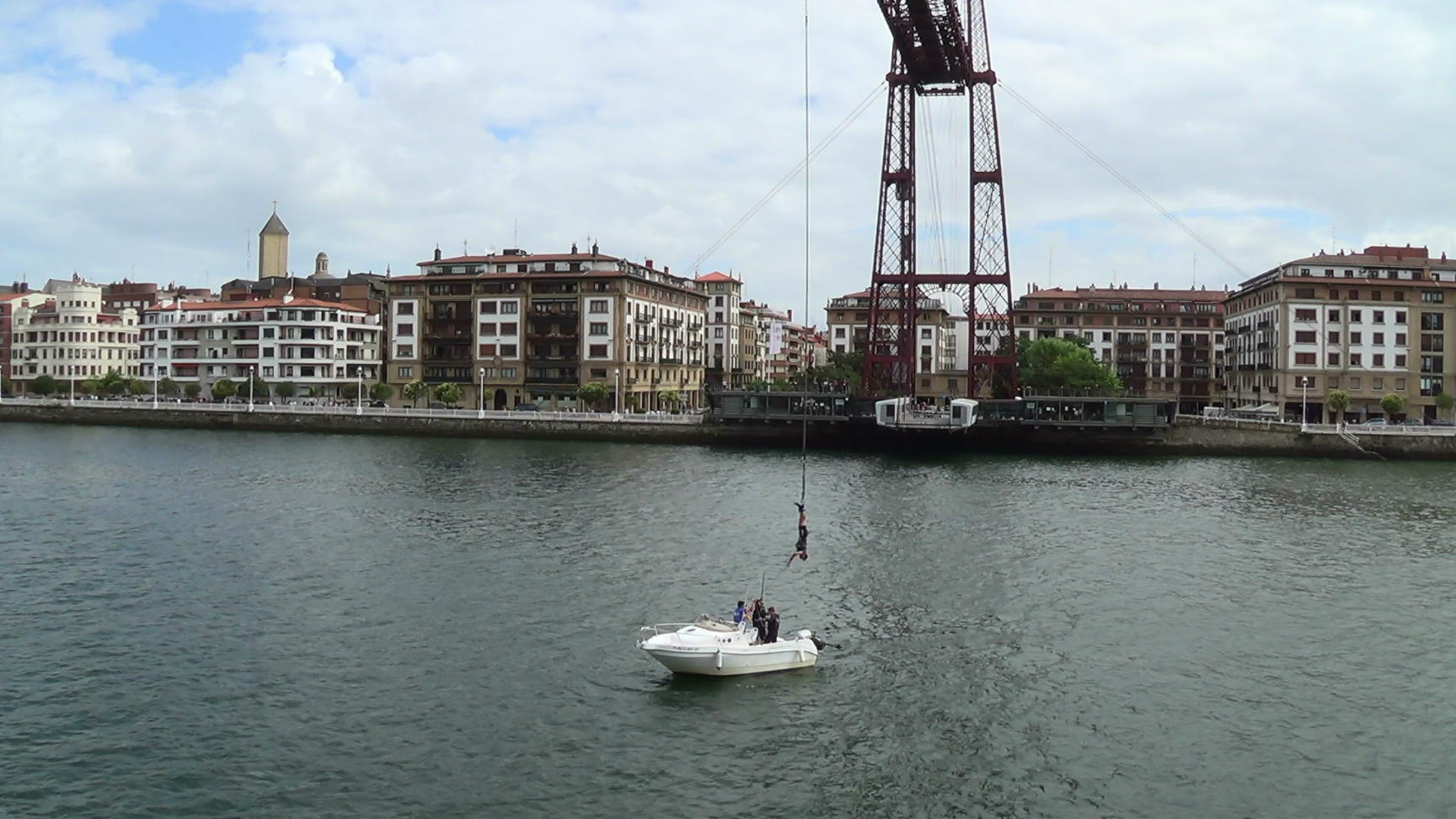 Recovery after the bungee jump from Puente de Vizcaya, known as Puente Colgante.