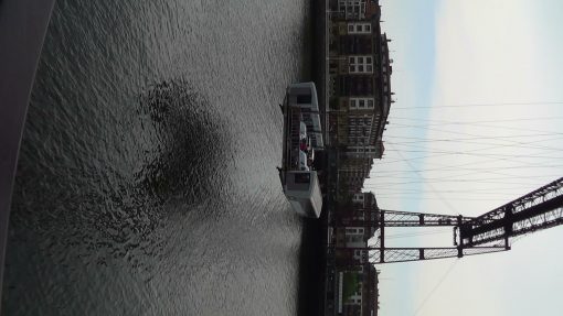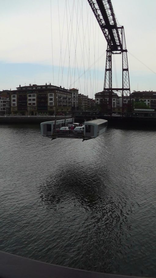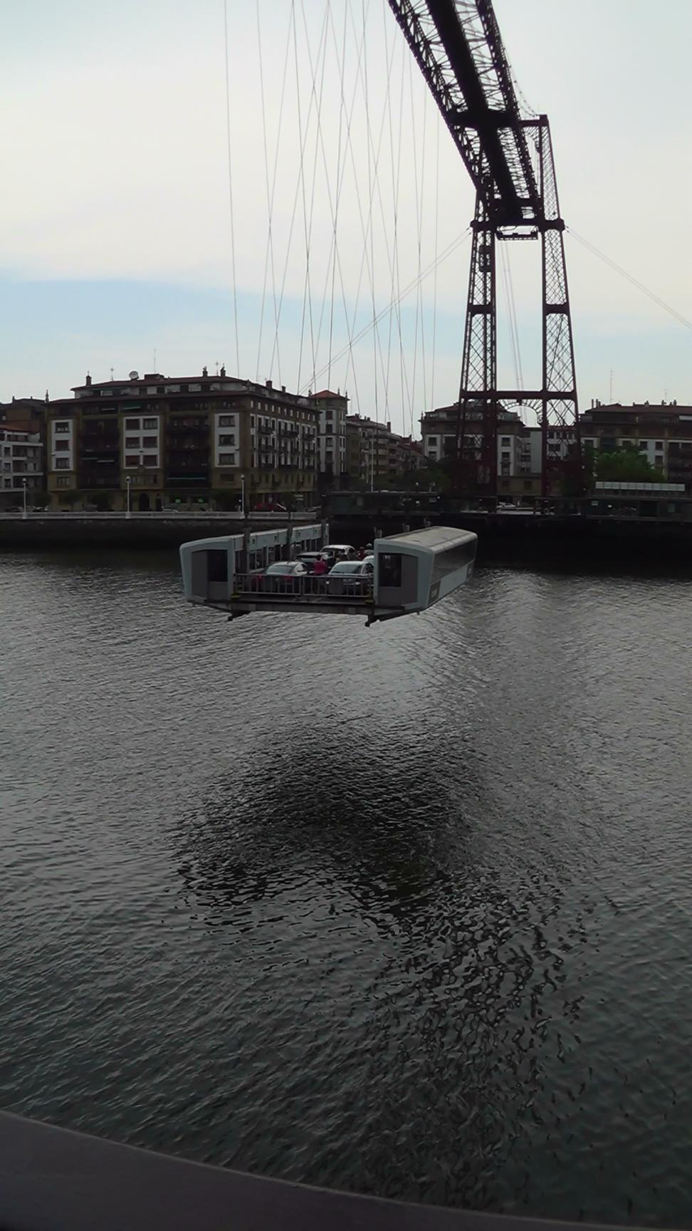 Puente de Vizcaya, known as Puente Colgante. Creators: Alberto Palacio Elissague, Ferdinand Arnodin. The gondola is on the way from Portugalete to Getxo, seen from Portugalete. UNESCO World Cultural Heritage Site. This is a panorama from the left to the right.