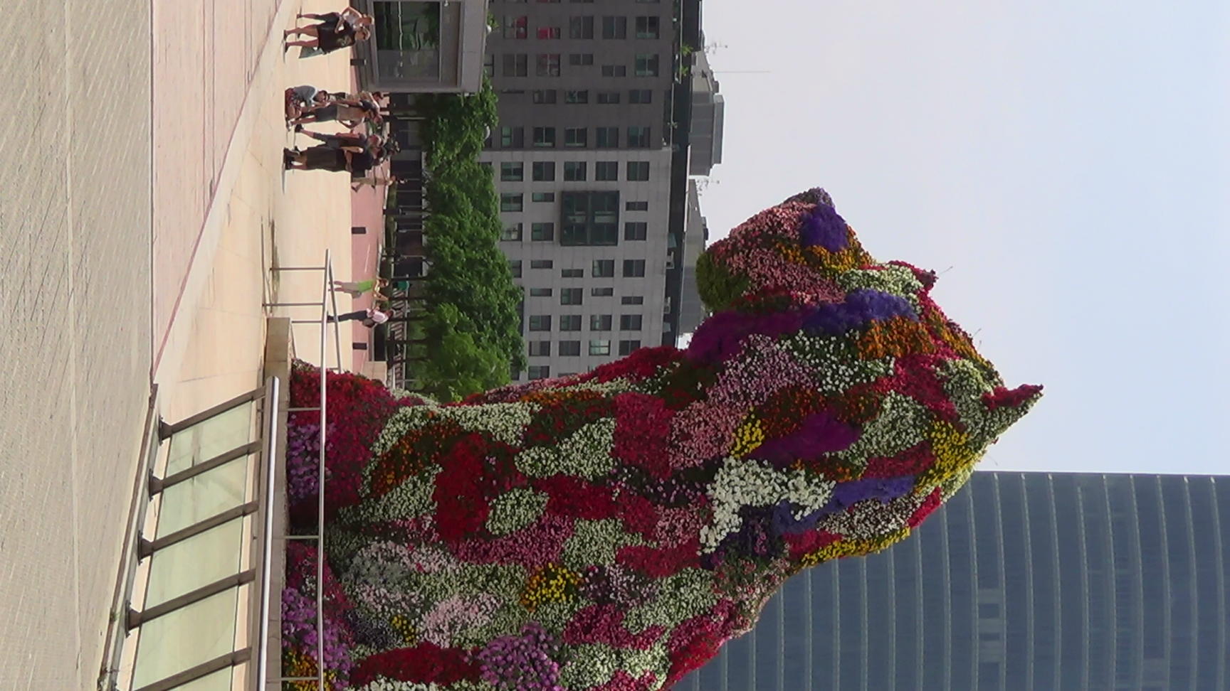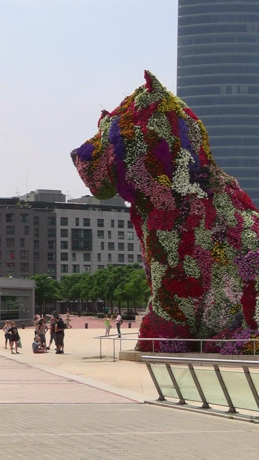 The flower dog “Puppy” (Artist Jeff Koons) on the square in front of the Guggenheim Museum.