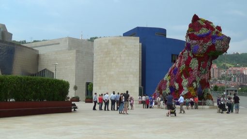 The flower dog “Puppy” on the plaza in front of the Guggenheim Museum.