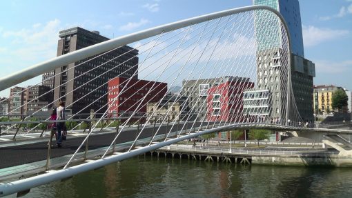 Zubizuri (White Bridge), the popular pedestrian bridge over the Nervion River. Architect Santiago Calatrava.