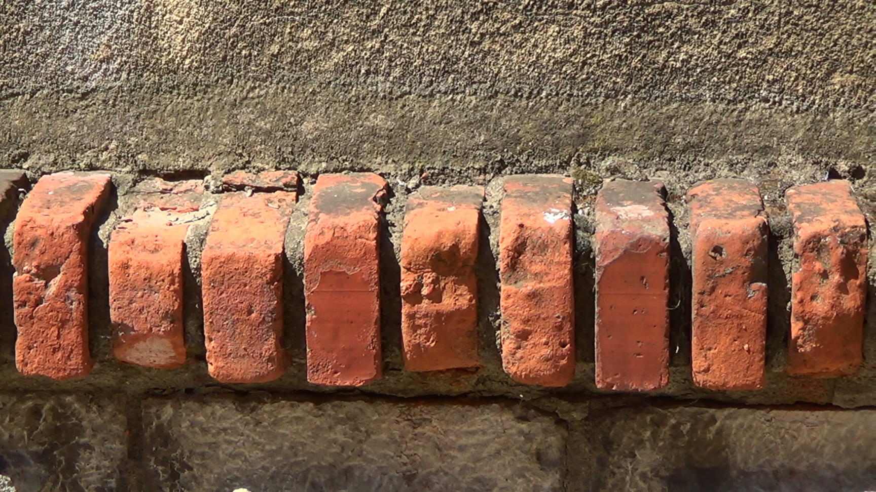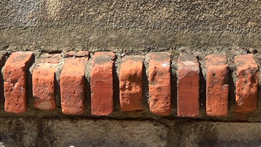 Bricks in a wall. Panorama from the left to the right. This take is closer to the wall than the video clip no. 20623.