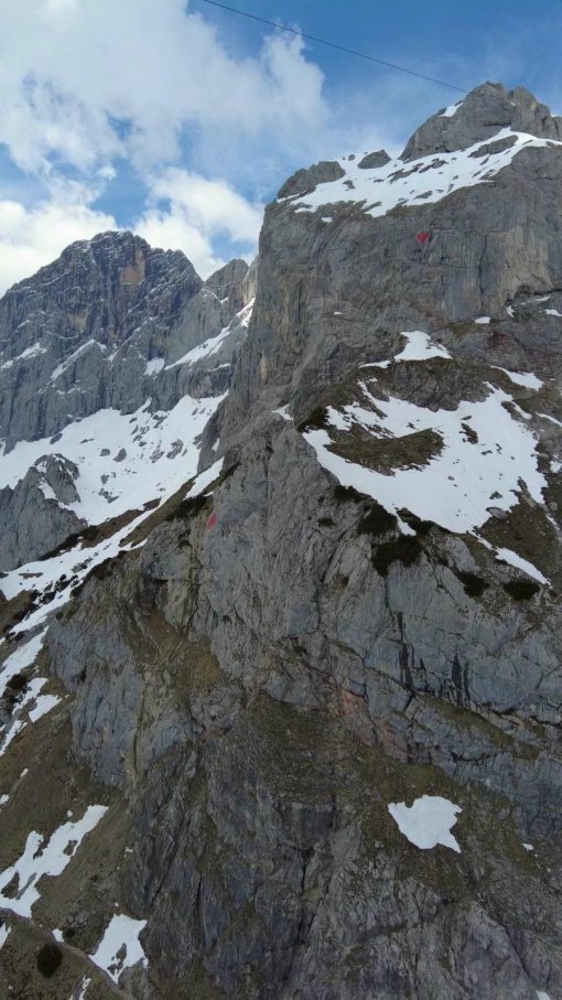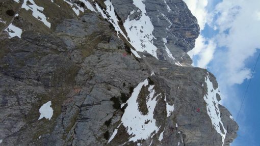 The Dachstein south wall, seen from the ropeway. This is a ride down, the gondola has just left the upper station.