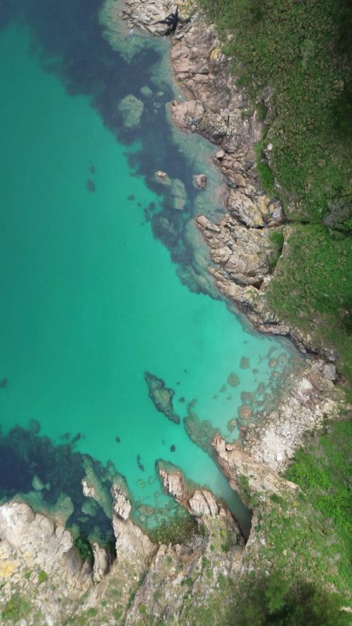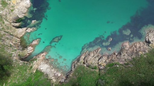 Costa da morte in Galicia, seen from above. The landscape passes bottom-up.