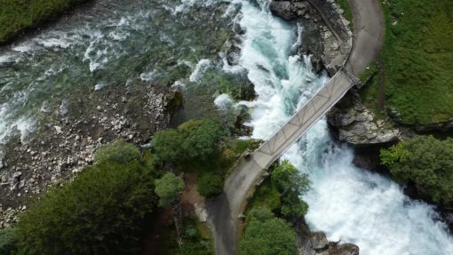 The Flåmselvi near Myrdal. The landscape moves bottom-up.