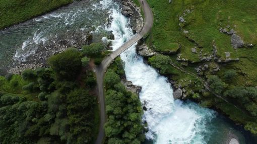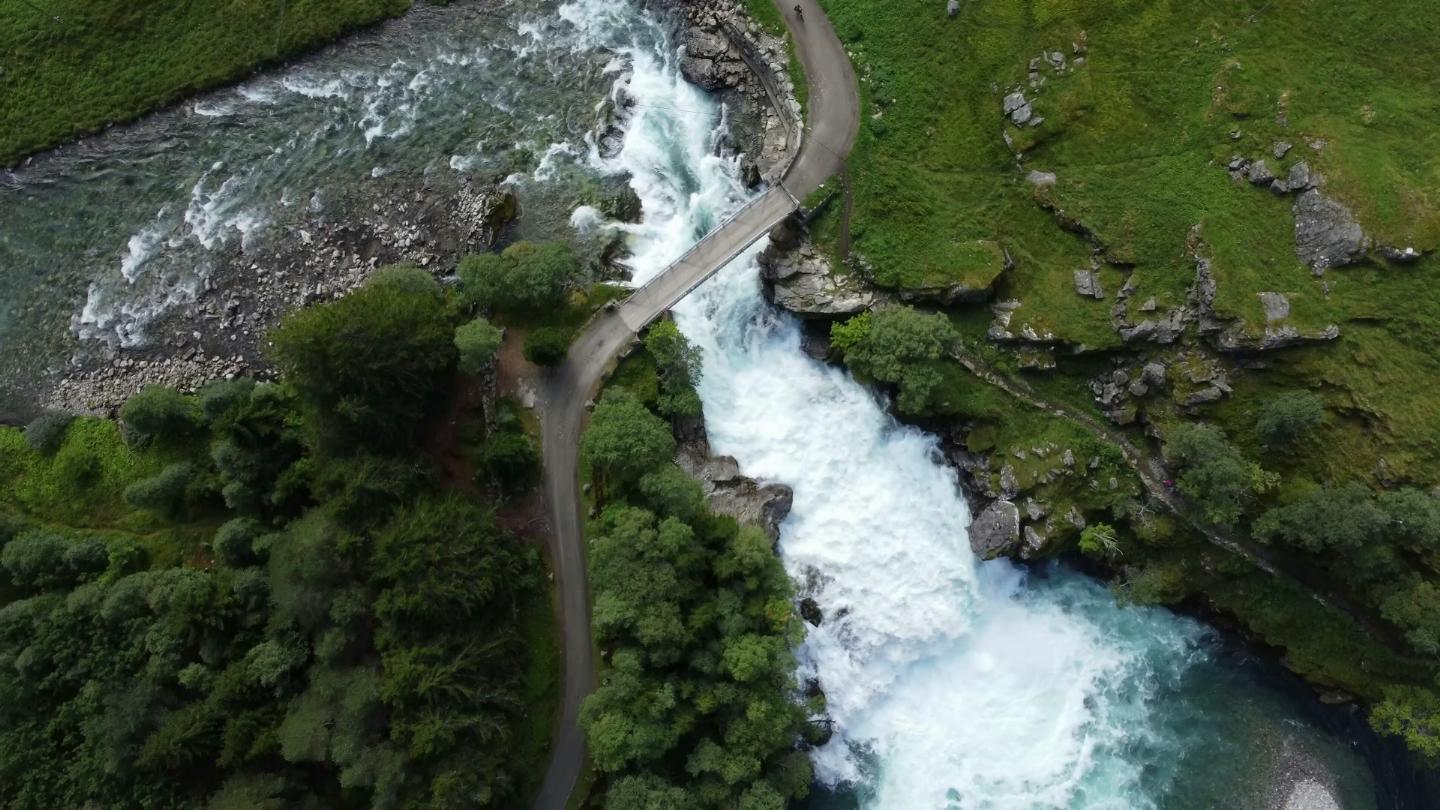 Flåmselvi near Myrdal. This is a flight backward and tilt down.