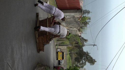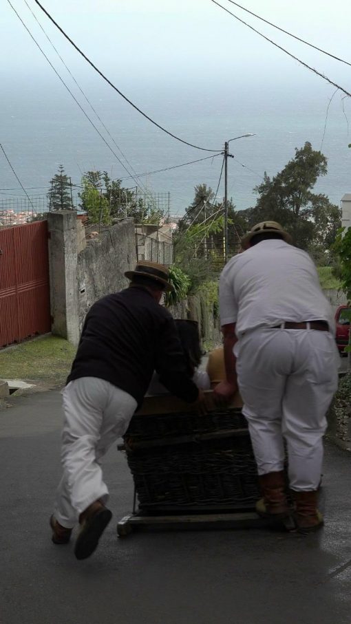 View from Monte down to Funchal, “Carreiros” with their wicker toboggans pass by.