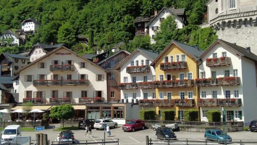 View from the ship. The village passes from the left to the right. Village and region are UNESCO World Heritage Site.