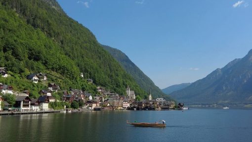 A local wooden boat (a “Fuhr”) passes. This type of boat is UNESCO World Cultural Heritage.