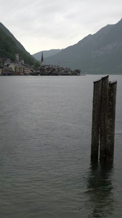 Heavy clouds and rain over Hallstätter See (Lake Hallstatt).