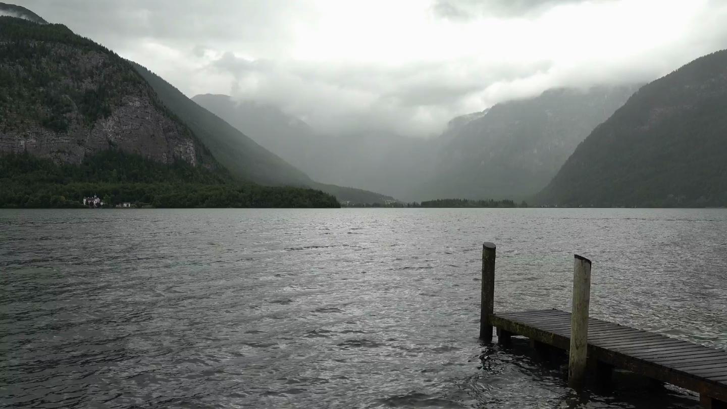 Heavy clouds over Hallstatt and Hallstättersee (Lake Hallstatt). The region is UNESCO World Heritage Site.