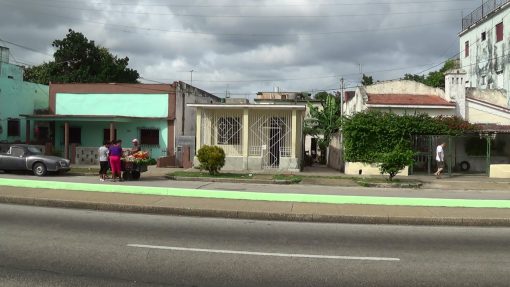 Street life in the district Playa, Avenida 31. The turquise/brown building behind the porch was (according to my travel guide) the former local social club of the ward Buena Vista. This is a panorama from the right to the left, from the street to the house.
